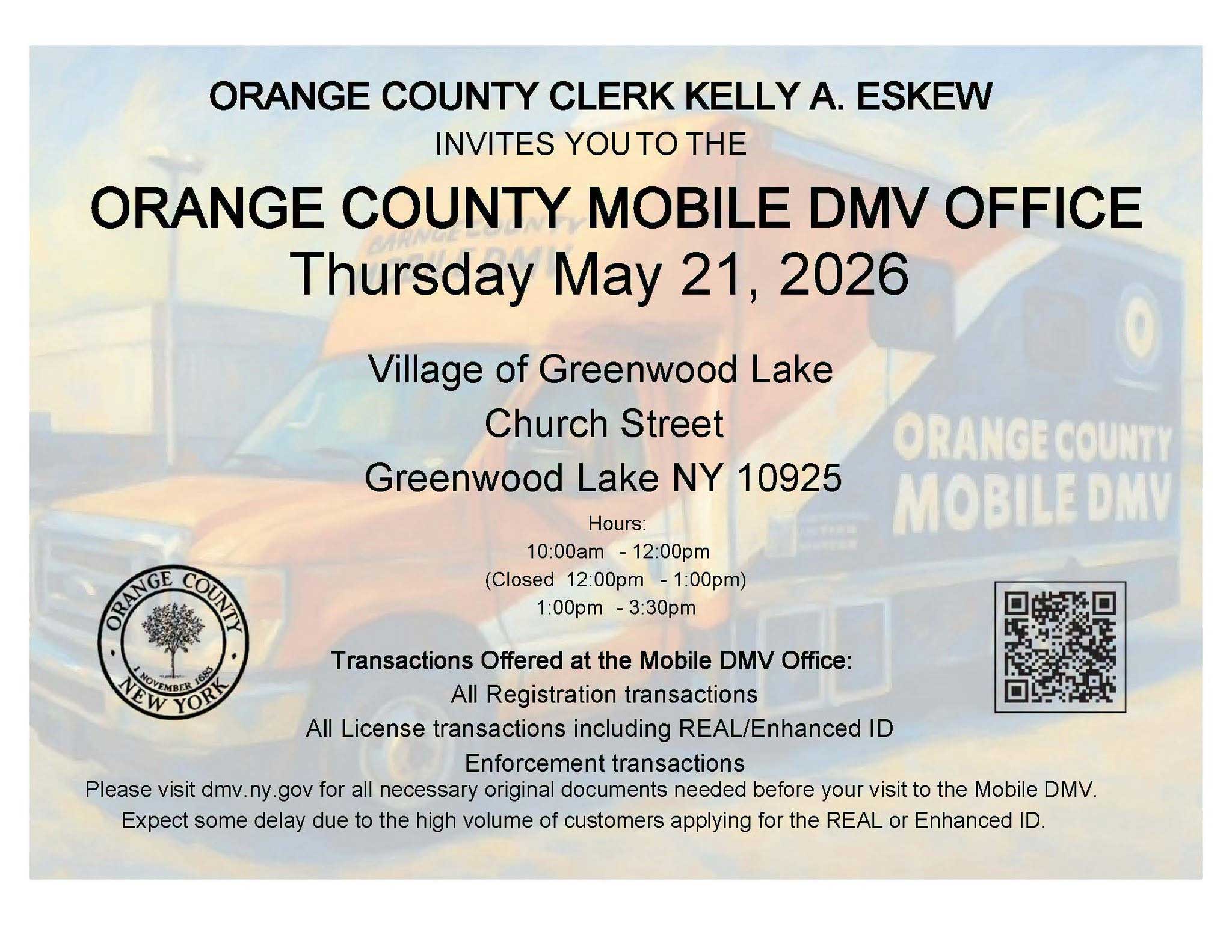 The Village of Greenwood Lake Village Board Meetings for 2025 will be held on the 3rd Wednesday of the Month. Location: Village of Greenwood Lake Court House located at 47 Waterstone Road, Greenwood Lake, NY. Also please note that our meetings maybe video conferenced via zoom. They are also live streamed at 6PM. Please note that meetings are video conferenced (on both the Village Facebook page and YouTube channel) for residents who cannot attend in person.